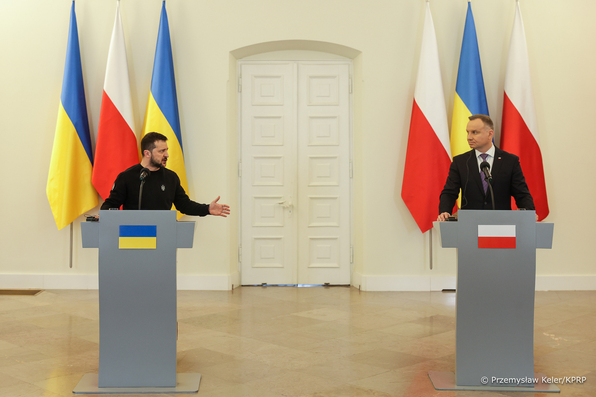 Podczas wizyty w Polsce Wołodymyr Zełenski spotkał się z prezydentem Andrzejem Dudą. Po rozmowach w cztery oczy oraz z doradcami, przyszedł czas na wspólną konferencję, na której prezydent Zełenski dziękował Polakom za „bezkompromisowe” wsparcie.