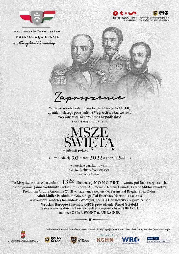 W walce Węgrów o niepodległość i wolność z Carską Rosją i Cesarstwem Austrii ważną rolę odegrali Polacy. Wrocławskie Towarzystwo Polsko-Węgierskie zaprasza do wspólnego świętowania.